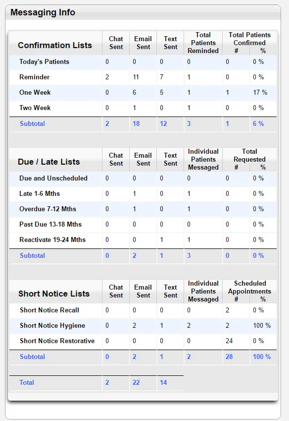 New to both practice and Corporate Dashboards, the Messaging Info Report has been reformatted for easier reading from this..